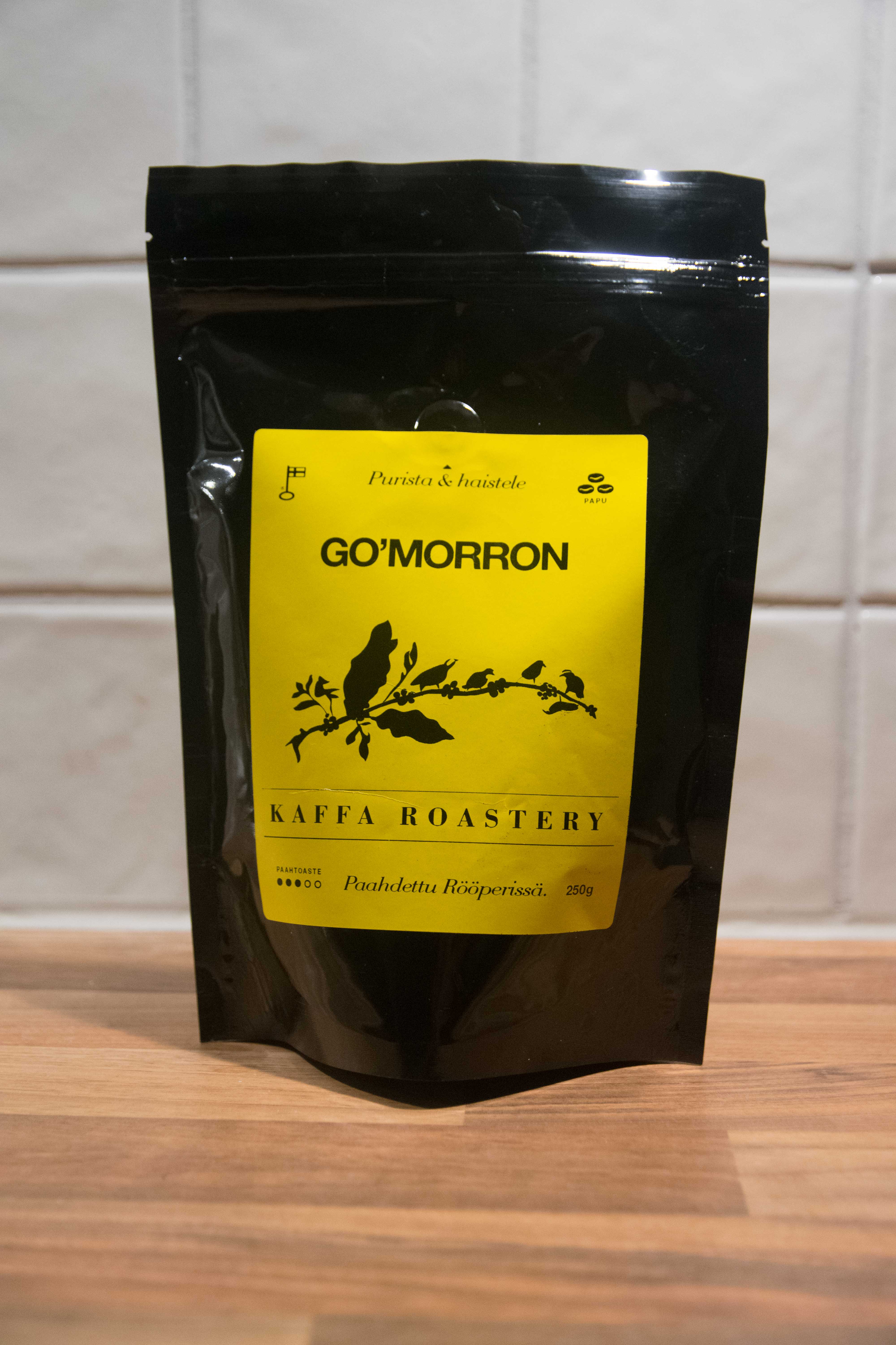 Verkkokaupassa käydessäni viime viikolla tuli sieltä ostettua itselleni uudenlaista kahvia, Go’Morronia. Go’Morronin on valmistanut Kaffa Roastery joka on Helsingissä sijaitseva paahtimo jolla on laajempikin valikoima erilaisia kahveja joista voi käydä lukemassa lisää heidän verkkosivuiltaan osoitteesta https://www.kaffaroastery.fi.