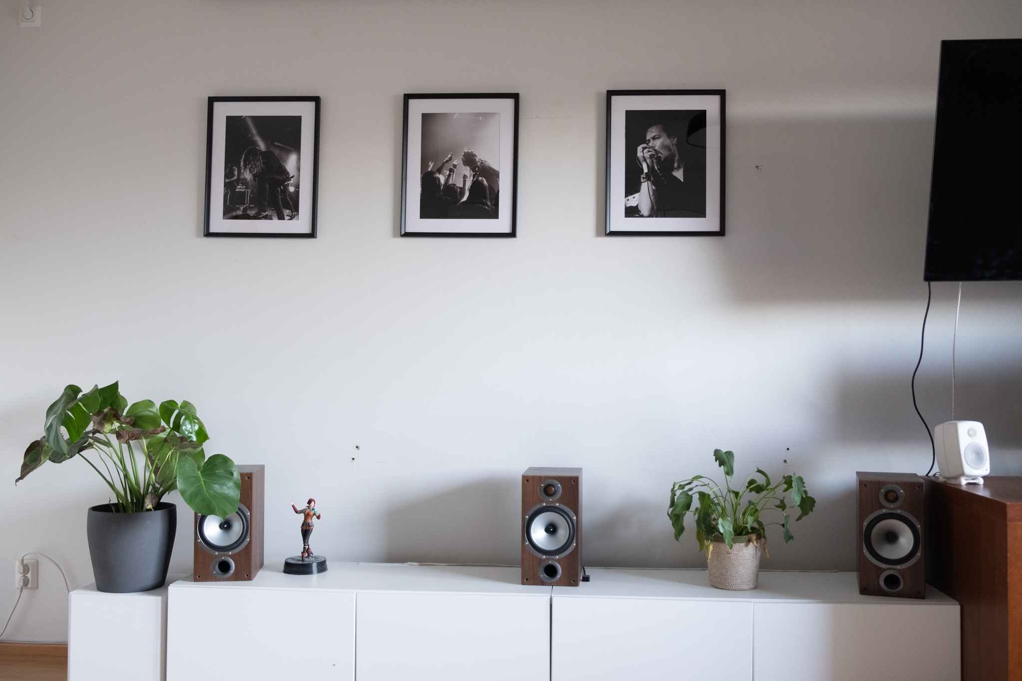 Käytävälle makuuhuoneen ja keittiön väliselle seinälle kuviksi valikoitu keikkakuvista Silentium-yhtyeen Riina Rinkisen siluetti, Entwine-yhtyeen Mika Tauriainen sekä Amorphis-yhtyeen Tomi Joutsen.