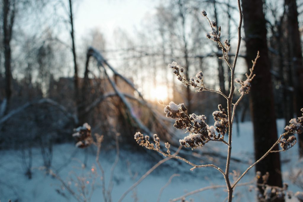 Lumen alle jäänyt kasvi talvipäivänä Vantaan Koivukylän Havukoskella 31.01.2026