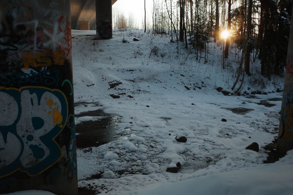 Jäätynyt joki Vantaan Koivukylän Havukoskella 31.01.2026
