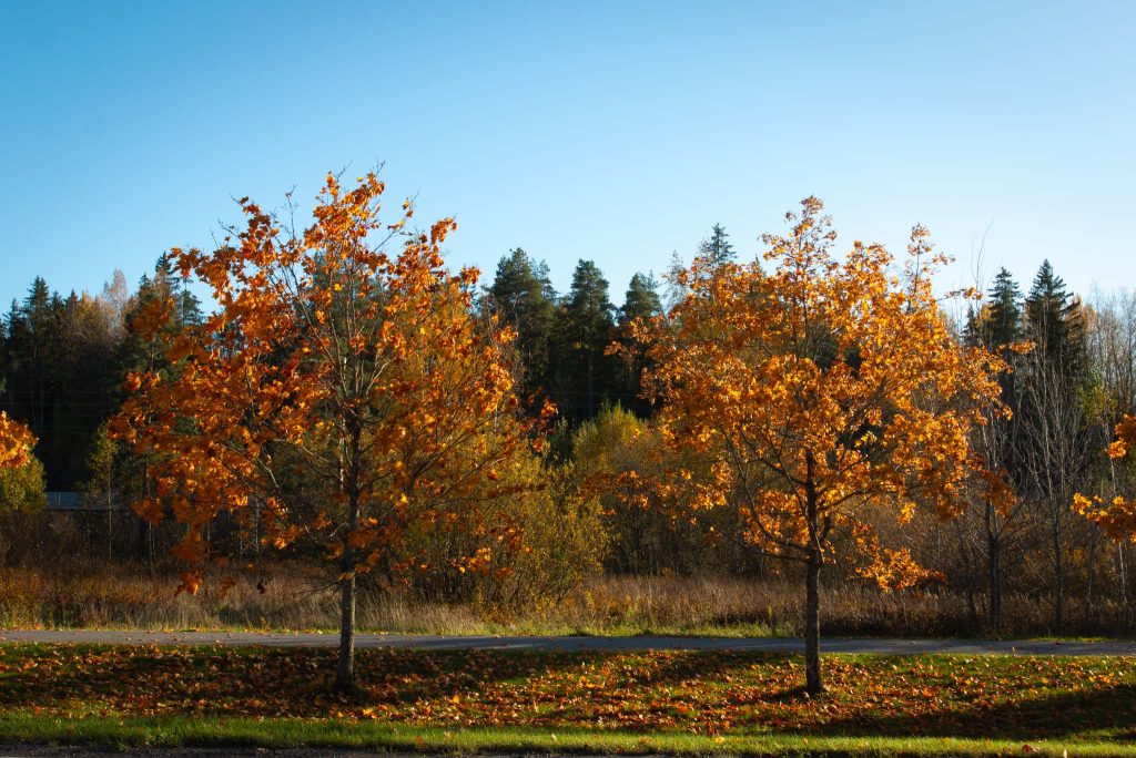 Syksyinen maisema Vantaan Koivukylän Havukoskella juna-raiteiden yläpuolella kulkevalta sillalta kuvattuna 09.10.2025Syksyn värejä bussipysäkin yllä Vantaan Koivukylän Havukoskella 09.10.2025Kaksi puuta joiden lehtiä on varissut maahan syksyn tullen. Kuva otettu Vantaan Ilolassa 10.10.2025.Puu joka on pudottanut osan lehdistään syksyn tullen. Kuva otettu Vantaan Ilolassa 10.10.2025.Hiusponnari maassa pudonneiden lehtien keskellä Havukoskella Vantaan Koivukylässä 09.10.2025