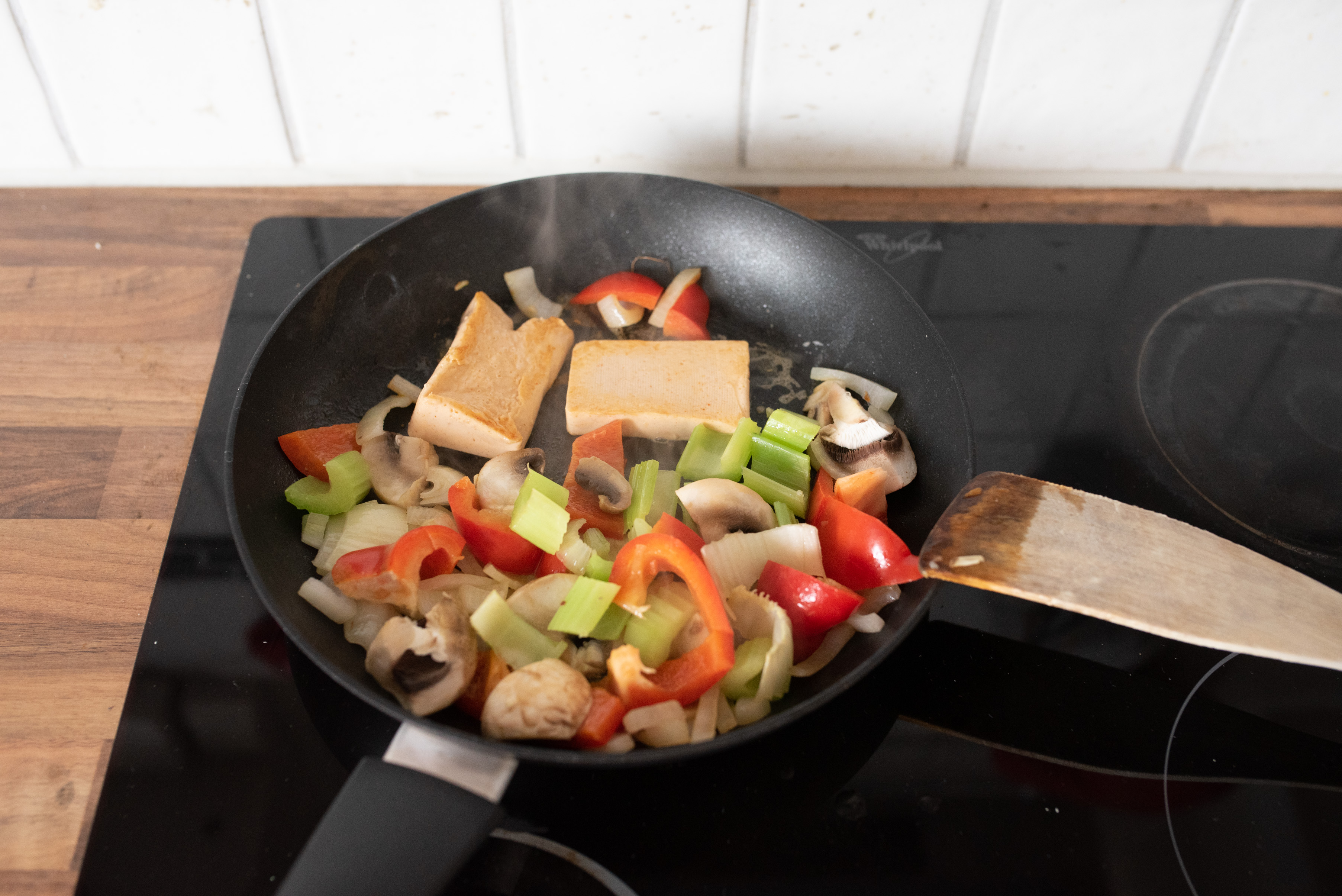 Aterian tekeminen on helppoa. Uuni n. 200 asteeseen, kana cordon bleu -pihvit uuniin pellille ja keskilämmölle n. 25 minuutiksi. Niiden valmistumista odottamista on aika heittää jäiset wokkivihanneket pannulle lämpenemään.