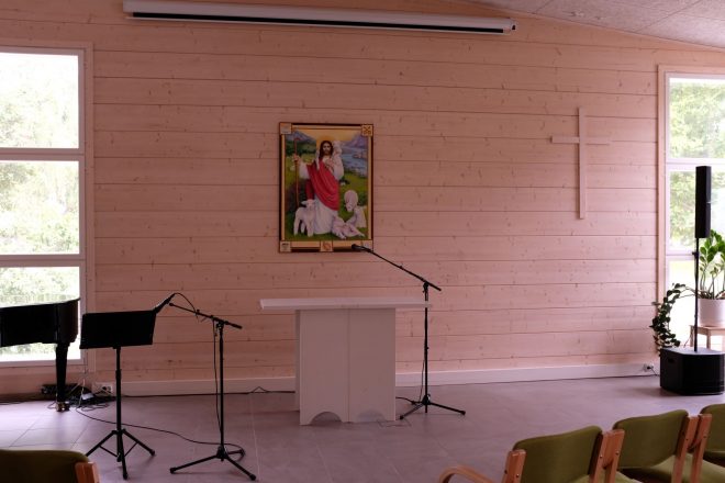 Jumalanpalveluksen osuus oli muodoltaan kohtalaisen normaali, oli ylistämistä, rukoilemista ja saarna. Tällä kertaa täällä tosin saarna katsottiin television kautta Aitolahden kirkolta eikä paikalla ollut ketään pitämässä puhetta. Ilmeisesti näin toimitaan täällä aina toisinaan, mutta myös normaaleja paikan päällä pidettäviä saarnojakin siis kyllä on mutta tällä kertaa niin ei sattunut olemaan. Ei siinä mitään, tärkeintä on että kirkossa opetetaan tervettä oppia joko paikan päällä tai striimin kautta.